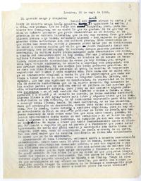 [Carta] 1950 mayo 22, Londres, Inglaterra [a] Arturo de Andraca-Goicoa [manuscrito] / Luis Oyarzún. 3 hojas ; 27 x 21 cm. .
