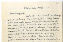 [Carta] 1957 marzo 24, de Quito a Cali, [a un amigo] [manuscrito] / Luis Oyarzún. 1 hoja ; 14,5 x 22 cm. .