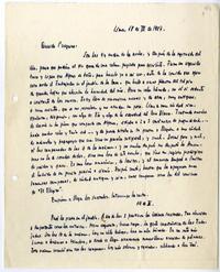 [Carta] 1957 marzo 18 y 19, Lima, Perú [a] Peregrino [manuscrito] Luis Oyarzún.