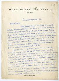 [Carta] 1962 septiembre 23, Lima, Perú [a] Roberto [manuscrito] Luis Oyarzún.