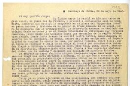 [Carta] 1945 mayo 26, Santiago, Chile [a] Jorge [Millas] [manuscrito] Luis Oyarzún.