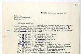 [Carta] 1972 marzo 22, Valdivia, Chile [a] Fernando Aránguiz [manuscrito] Luis Oyarzún.