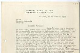 [Carta] 1972 marzo 16, Valdivia, Chile [a] Fernando Aránguiz [manuscrito] Luis Oyarzún.