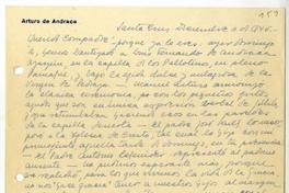 [Carta] 1945 diciembre 3, Santa Cruz, Chile [a] Luis Oyarzún [manuscrito] / Arturo de Andraca-Goicoa. 2 hojas ; 18,5 x 21 cm. .