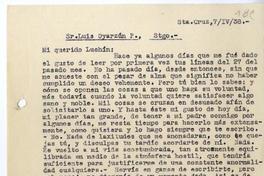 [Carta] 1938 abril 7, Santa Cruz, Chile [a] Luis Oyarzún [manuscrito] Arturo de Andraca-Goicoa.