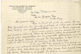 [Carta] 1942 febrero 12, Santiago, Chile [a] Luis Oyarzún [manuscrito] Hortensia Peña.
