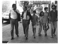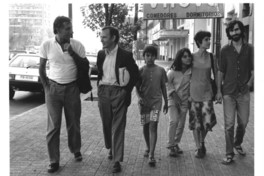 Jorge Teillier caminando junto a Santiago Pedraglio, Adrián y Tamia Portugal, Carolina y Sebastián Teillier.