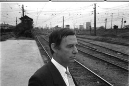 Retrato de Jorge Teillier en la estación de trenes de Lautaro.