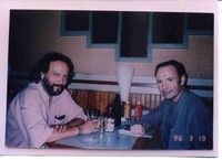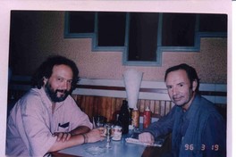 Jorge Teillier junto a Esteban Navarro en un Bar-restaurant de la calle Mac-Iver.