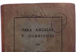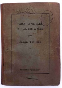 Portada del libro de Jorge Teillier "Para ángeles y gorriones", Ediciones Puelche, primera edición, año 1956.
