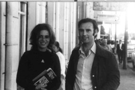 Retrato de Jorge Teillier junto a una mujer sin identificar.