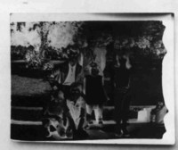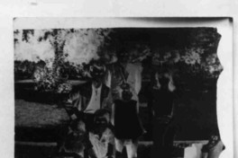Fotografía de un negativo en papel, donde aparece: Jorge Teillier y sobrinos.