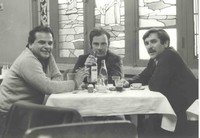 Jorge Teillier junto a Ariel Peralta y Aurelio Monroe.