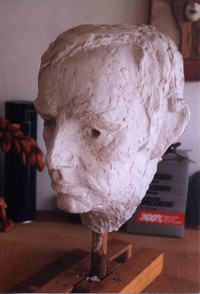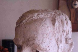 Fotografia del rostro de Jorge Teillier en yeso realizado por Cristina Wenke.