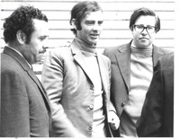 Jorge Teillier junto a dos poetas en las "Jornadas Nerudianas".