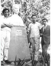 "Gabriela Mistral" [fotografía]. Montegrande, Chile : [Editor no identificado]; 1966. 1 fotografía : Monocromo en blanco y negro, papel mate, 17,5 x 24 cm. .