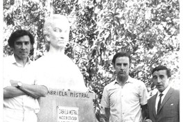 Jorge Teillier junto a Rolando Cárdenas y Jorge Aravena, visitando monumento de Gabriela Mistral en Montegrande.