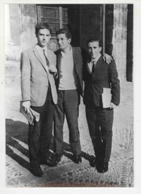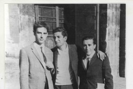 [Jorge Teillier junto a dos amigos] [fotografía]. [Santiago], Chile : [Editor no identificado]; 1963. 1 fotografía : Monocromo en blanco y negro, papel mate, 14,1 x 20 cm. .