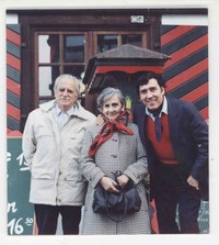 [Jorge Aravena junto a los padres de Jorge Teillier] [fotografía]. Berlin, Alemania : [Editor no identificado]; [1985]. 1 fotografía : color, 8 x 9 cm. .