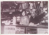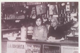 Sara Sandoval, madre de Jorge Teillier, con su tía Amalia Bahamondes Muñoz, en el negocio de abarrotes en Freire.