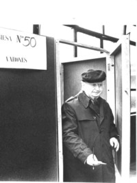Volodia Teitelboim emitiendo su voto, durante un periodo de elecciones.