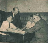 Volodia Teitelboim junto a Don Luis Corvalán y Orlando Millas en las oficinas de Redacción del Diario "El Siglo".