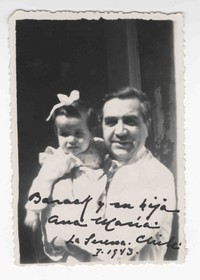 Retrato de Barack Canut de Bon junto a su hija Ana María, con dedicatoria a Gabriela Mistral.