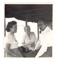 [Gabriela Mistral, Emma Cosío Villegas y un amigo navegando el río Papaloapan (Veracruz)] [fotografía]. Tlacotalpan, México : [Editor no identificado] ; 1949. 1 Fotografía ; monocromo en blanco y negro, papel fotográfico 9 x 8,3 cm. .