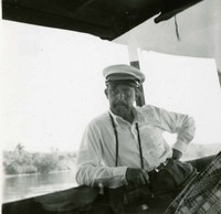 [Capitán de la embarcación en el río Papaloapan] [fotografía]. Veracruz, México : [Editor no identificado] ; 1949. 1 Fotografía; monocromo en blanco y negro, papel fotográfico. 6,6 x 6,4 cm. .