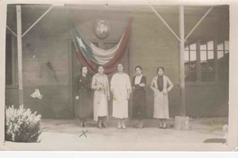 Hortensia Saá Olmos junto a otras profesoras en la Escuela N°1 de Andacollo, fotografía dedicada a Gabriela Mistral.