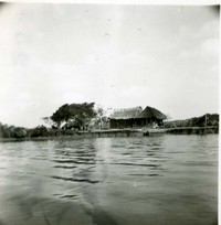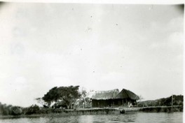 Muestra una vista general de una casa construida en la orilla del río Papaloapan en Veracruz (México).