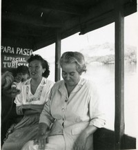 [Gabriela Mistral y Emma Cosío Villegas navegando en el río Papaloapan (Veracruz)] [fotografía]. Veracruz, México : [Editor no identificado] ; 1949. 1 Fotografía; monocromo en blanco y negro, papel fotográfico, 12,7 x17,7cm. .