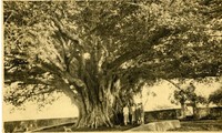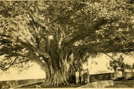 Aparecen tres mujeres y un hombre no identificados junto a la antigua higuera de la Hacienda El Lencero en Xalapa, Veracruz (México).