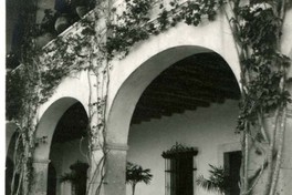 Muestra parte del primer piso de la casa principal de la Hacienda El Lencero en Xalapa, Veracruz (México), con su galería con arcadas y ventanas con rejas de hierro.