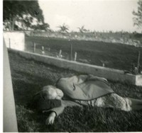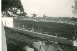 Gabriela Mistral dormitando tendida en el suelo en una zona campestre de México.