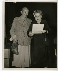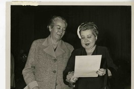 Gabriela Mistral, Chile y Minerva Bernandino, República Dominicana. En la sala de conferencia momentos antes de iniciar la Sesion de la Comisión de la Condición Jurídica y Social de la Mujer.