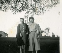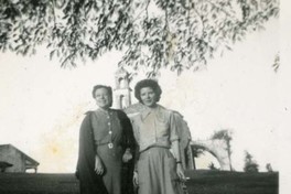 [Doris Dana y Palma Guillén en la Hacienda El Lencero en Xalapa, Veracruz (México)] [fotografía]. Xalapa, México : [Editor no identificado] ; [entre 1948 y 1950]. 1 Fotografía ; monocromo en blanco y negro, papel fotográfico. 4,3 x 4,7 cm. .