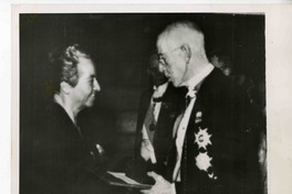 El Rey Gustavo V de Suecia distingue a Gabriela Mistral con el Premio Nobel de Literatura en el Palacio de los Conciertos de Estocolmo (diciembre 1945)