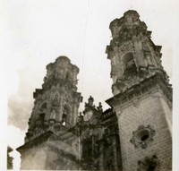 [Templo de Santa Prisca en Taxco (México)] [fotografía]. Taxco, México : [Editor no identificado] ; [entre 1948 y 1950]. 1 Fotografía; monocromo en blanco y negro, papel fotográfico, 6 x 5,9 cm. .