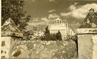 [Vista del ex Convento de San Agustín de Acolman en México] [fotografía]. Acolman, México : [Editor no identificado] ; [entre 1948 y 1950]. 1 Fotografía ; monocromo en blanco y negro, papel fotográfico, 8,4 x 13,4 cm. .