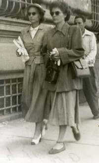 Doris Dana y una mujer no identificada caminando por una calle en México.