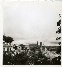 [Vista de la Ciudad de Taxco, México] [fotografía]. Taxco, México : [Editor no identificado] ; [entre 1948 y 1950]. 1 Fotografía ; monocromo en blanco y negro, papel fotográfico, 7 x 6 cm. .