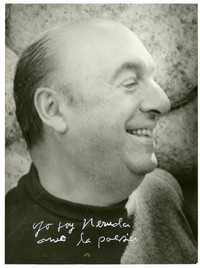 Retrato de Pablo Neruda dedicado "Yo soy Neruda, amo la poesia".
