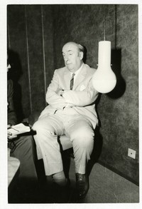 [Entrevista a Pablo Neruda] [fotografía]. [Santiago, Chile] : [Editor no identificado] ; 1972. 1 fotografía : Monocromo en blanco y negro, papel fotografíco opaco. 18 x 11,9 cm. .