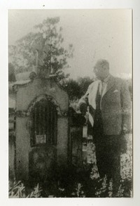 Pablo Neruda en la Tumba de Miguel Hernández.