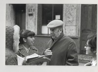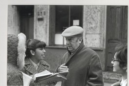 Pablo Neruda conversando con tres jóvenes en Temuco.