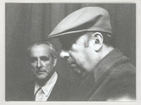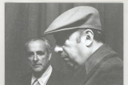 Pablo Neruda junto a Fernando Teillier, padre del poeta Jorge Teillier, en las "Jornadas nerudianas" realizadas en Temuco.