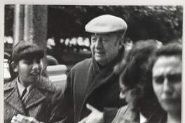 Pablo Neruda reunido con unas jóvenes, en el centro de Temuco.