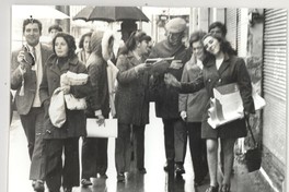 Pablo Neruda reunido con unas jóvenes, en el centro de Temuco.