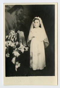 Texto al reverso de la imagen:"Chela Albornoz, sobrina por parte de Martha", tiene un timbre con la fecha de captura, "29 DIC 1951" y un cuño con el nombre "Arroyo Hnos. Independiente 334-stgo".